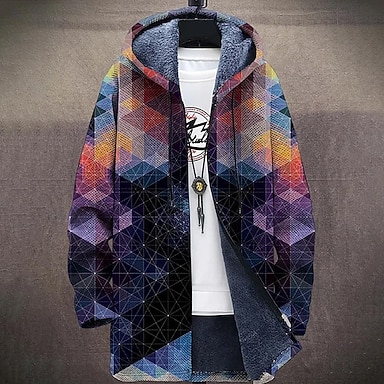 Hombre Bloque de color Abrigo de invierno Chaqueta de lana Abrigo Mantiene abrigado Cómodo Casual Ropa Cotidiana Cremallera Bolsillo Impresión 3D Otoño Invierno Con Capucha Manga Larga Arco Iris