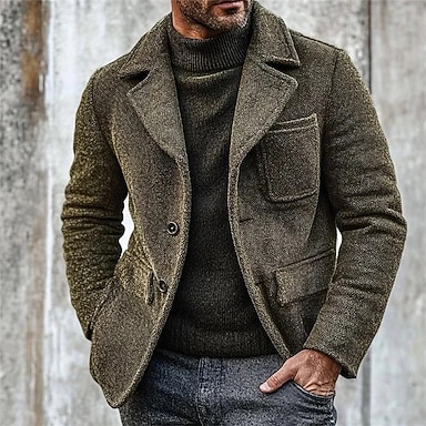 Hombre Chaqueta americana Casual Negocio Trabajo Elegante Cálido Otoño Invierno Polyester Color sólido Botonadura Simple Chaqueta de sport Verde Ejército