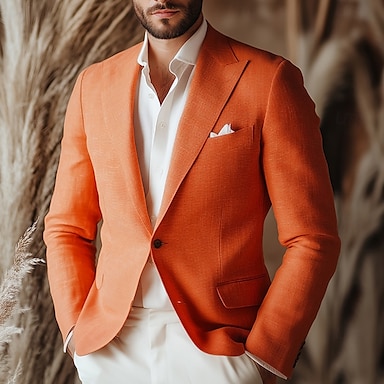 Hombre Chaqueta de lino Chaqueta deportiva Cuello de muesca Moda Casual Color sólido Amarillo Naranja Beige Estándar Recto 1 botón