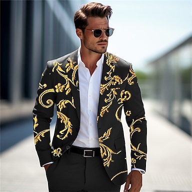 derbi de kentucky Hombre Floral Manga Larga Cuello Vuelto Negocios Trabajo Usar para trabajar Noche Botones Estampado Multi bolsillo