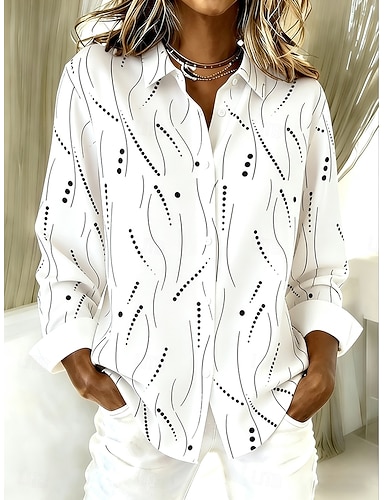 Mujer Camisa Botones Estampado Graphic Geométrico Vintage Elegante Moderno Manga Larga Cuello Camisero Tops regulares Diario Blanco Marrón claro Morado Fucsia Caqui Primavera Invierno