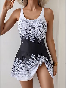 Mujer Bañadores Una pieza Falda Traje de baño Elegante Vacaciones Ombre Floral Cuchara Sin Mangas Trajes de baño