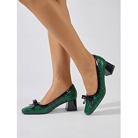 Zapatos de tacón profesionales verdes con relieve de cocodrilo para mujer: cómodos tacones de bloque con punta cuadrada y detalle de lazo, ideales para la oficina y reuniones de negocios. &ropa de