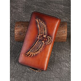 Cartera larga de piel auténtica para mujer con diseño de águila tallada, bolso de mano vintage con cremallera para damas con estilo, perfecto para uso diario y ocasiones especiales.