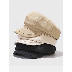 Gorra de vendedor de periódicos de lona para mujer: ligera y transpirable, con ala curva y correa ajustable, perfecta para ropa urbana de otoño/invierno, viajes y uso diario.