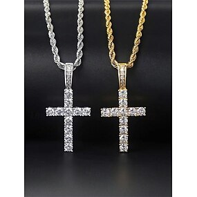 Collar con colgante de cruz para hombre, de cobre y circonita, disponible en colores oro y plata, con un diseño moderno y brillante, perfecto para viajes de vacaciones y para uso diario informal.