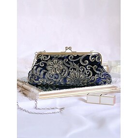 Cartera de mano con lentejuelas para mujer: material de poliéster, varios colores, adornada con diseño floral metálico, incluye cadena para llevar al hombro, ideal para bodas, fiestas y eventos nocturnos.