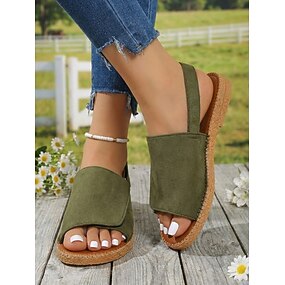 Sandalias planas informales de color verde militar para mujer: cómodas sandalias planas con punta abierta y tira trasera para playa y viajes en verano. &uso diario
