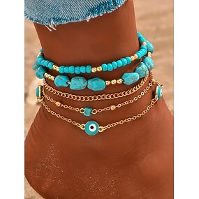 Conjunto de tobilleras turquesa y doradas para mujer | Tobilleras de inspiración playera con dijes de mal de ojo y detalles de piedras | Perfectas para estilo veraniego, bohemio y vacacional