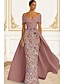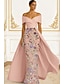 Corte A Corte Trompeta Sirena Cola de Corte Vestidos de noche Vestido de baile con sobrefalda Vestimenta formal Elegante Estilo de Celebridad Manga Larga Un Hombro Fiesta de jardin Boda Lentejuelas