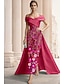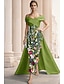 Corte A Funda Columna Hasta el Suelo Vestido de gala con capa Vestidos de noche Corte Cenicienta Vestimenta formal Elegante Vintage Floral Manga Corta Cuello Barco Boda Formal Tejido elástico Espalda
