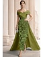 Corte A Corte Trompeta Sirena Hasta el Suelo Vestidos de noche Vestido de baile con sobrefalda Vestimenta formal Elegante Estilo de Celebridad Manga Corta Cuello Alto Fiesta de jardin Boda Satén