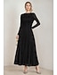 Corte A Vestido Midi Vestidos de coctel Vestidos de fiesta Elegante Manga Larga Cuello Barco Fiesta de jardin Boda Gasa Satén con Plisado Detalles de Cristal Impresión