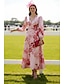 Corte A Asimétrica Hasta el Suelo Vestidos de noche Corte Cenicienta Vestimenta formal Elegante Vintage Manga Corta Cuello Camisero Boda Formal Bolsillo Nailon con Estampado flor