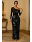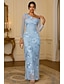 Funda Columna Hasta el Suelo Bordado con cuentas Vestido formal Vestido de madre de la novia Vestidos de noche Vestimenta formal Elegante Vintage Manga Larga Un Hombro Boda Formal Encaje con Apliques