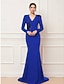 Corte Trompeta Sirena Cola de Corte Trajes de gala Vestidos de noche Corte Cenicienta Vestimenta formal Elegante Estilo de Celebridad Manga Larga Escote en Pico Boda Formal Crepé elástico con Bordados
