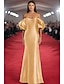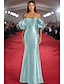 Corte Trompeta Sirena Hasta el Suelo Vestido formal Vestido de noche Vestidos de noche Elegante Vintage Manga Corta Hombros Caídos Formal Invitado a la boda Satén con Un Color