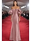 Corte Trompeta Sirena Cola de Corte Vestido Invitada Boda Vestido formal Vestido de noche Trajes de gala Elegante Manga Larga Hombros Caídos Fiesta de baile Formal Gasa Tejido elástico con Un Color