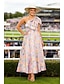 Corte A Hasta la Rodilla Vestido de Fiesta Vestido Cóctel Vestido Invitada Boda Vestidos de invitada de boda Diario Manga Corta Cuello Camisero Fiesta de baile Boda con Estampado flor