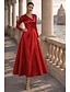 Corte A Vestido Midi Vestidos de coctel Elegante Manga Corta Cuello Camisero Fiesta de jardin Boda Tafetán Satén elástico con Flores 3D Lazo(s)
