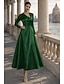 Corte A Vestido Midi Bordado con cuentas Vestido formal Vestido de madre de la novia Vestidos de coctel Vestidos de fiesta Elegante Manga 3/4 Cuello Barco Fiesta de jardin Boda Satén Encaje con
