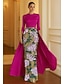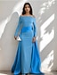 Corte A Hasta el Suelo Vestidos de noche Vestido de baile con sobrefalda Vestimenta formal Elegante Reluciente Estilo de Celebridad Manga Larga Hombros Caídos Fiesta de jardin Boda Satén Satén