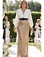 Corte A Hasta el Suelo Vestidos de noche Corte Cenicienta Vestimenta formal Elegante Sedoso Manga Larga Cuello Barco Boda Formal Vestido champán para madre de la novia Satén Lentejuelas con Lazo(s