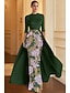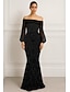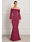 Funda Columna Cola de Corte Vestidos de noche Vestido de baile con sobrefalda Vestimenta formal Elegante Manga Larga Hombros Caídos Fiesta de jardin Boda Satén Crepé elástico con Sobrefalda