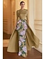 Corte A Funda Columna Hasta el Suelo Bordado con cuentas Vestido formal Vestido de madre de la novia Vestidos de noche Vestido de baile con sobrefalda Vestimenta formal Elegante Vintage Reluciente