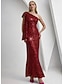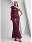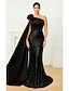 Funda Columna Hasta el Suelo Vestido de gala con capa Vestidos de noche Corte Cenicienta Vestimenta formal Elegante Reluciente Sedoso Sin Mangas Un Hombro Boda Formal Bolsillo Satén Lentejuelas con
