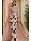 Corte Trompeta Sirena Hasta el Suelo Vestidos de noche Elegante Sedoso Manga Corta reina Ana Boda Formal Bolsillo Nailon con Estampado flor