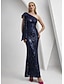 Funda Columna Hasta el Suelo Trajes de gala Vestidos de noche Corte Cenicienta Vestimenta formal Elegante Bloque de Color Reluciente Manga Corta Hombros Caídos Boda Formal Lentejuelas Terciopelo con