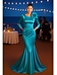 Corte Trompeta Sirena Hasta el Suelo Trajes de gala Vestidos de noche Corte Cenicienta Vestimenta formal Elegante Reluciente Estilo de Celebridad Manga Larga Un Hombro Fiesta de jardin Boda Satén