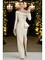 Funda Columna Vestido Midi Vestidos de coctel Vestidos de fiesta Elegante Reluciente Manga Corta Hombros Caídos Boda Formal Satén elástico con Abertura
