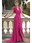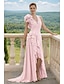 Corte A Hasta el Suelo Trajes de gala Vestidos de noche Estilo de Celebridad Sin Mangas Un Hombro Fiesta de baile Formal Organdí con Fruncido Volantes Abertura