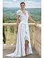 Vestidos de invitada de boda en forma de A Vestido alto-bajo Invitada de boda Asimétrico Manga corta Cuello en V Boda de otoño Encaje con abertura