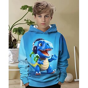 Chico 3D Dinosaurio Sudadera Manga Larga Primavera Otoño Moda Ropa de calle Niños 4-12 años Con Capucha Exterior Casual Diario Ajuste regular