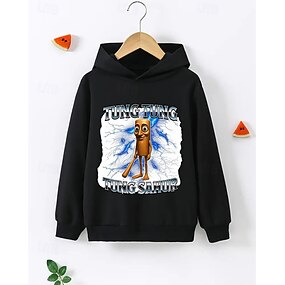 Sudadera informal de manga larga para niño con estampado de Tung Tung Tung Sahur, ropa de calle de moda para primavera y otoño, para niños de 4 a 12 años, con capucha, para exteriores, uso diario,