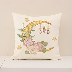 Funda de almohada decorativa para Ramadán Eid, con estampado de luna creciente musulmana, decoración de Oriente Medio, cojín de lino para sofá, cojín duradero para sala de estar y sala de oración.