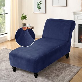 Funda de terciopelo elástico para chaise lounge, funda para silla, elástica, negra, para dormitorio, sala de estar, suave, duradera, lavable