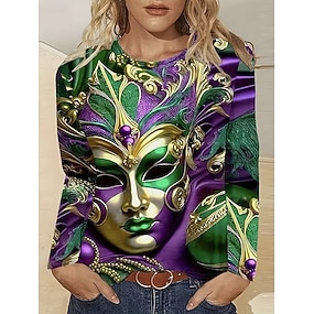 Camisa de T Shirt de Mujeres Carnaval Gráfica de Moda Casual de Manga Larga Cuello Redondo Tops Regulares Impresión Diaria Fin de Semana Azul Negro Púrpura Verano Primavera Otoño
