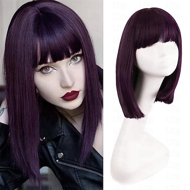 Peluca Bob Blanca para Mujeres peluca blanca corta con flequillo Pelucas Bob Rectas Sintéticas para Uso Diario Fiesta Cosplay Halloween