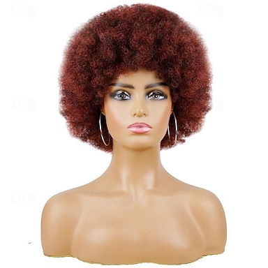 Pelucas afro para mujeres negras peluca afro negra corta de los años 70 pelucas afro esponjosas para mujeres peluca rizada naturalmente sintética de 10 pulgadas pelucas de Halloween de fiesta diaria
