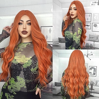 Peluca Sintética Lisa de Parte Media Hecha a Máquina Peluca Larga A1 A2 A3 A4 A5 Cabello Sintético Cosplay Suave Pelucas de Fiesta Rubias Rosadas Rojas Pelucas de Halloween