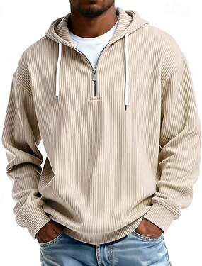 Hombre Sudadera Pana Sudadera Con Capucha Sudadera con capucha y cremallera de un cuarto Albaricoque Rojo tinto Negro Blanco Verde Claro Con Capucha Plano Cremallera Con Texturas Casual Diario Deporte