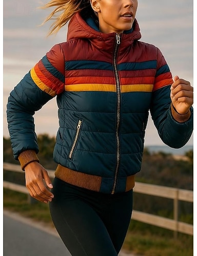 Mujer Chaqueta de lana Abrigo de invierno Cerrar Bolsillo Manga Larga Camiseta Ropa Deportiva Otoño A Rayas Algodón Resistente al Viento Templado Al Aire Libre Viaje Vocación Ropa de deporte Ropa de
