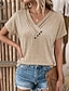 Mujer Camisa Tops de verano Color sólido Casual Estilo playero Manga Corta Escote en Pico Tops regulares Beige Verano