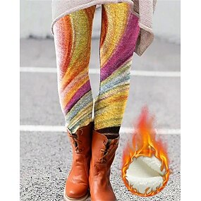 Mujer Polainas Leggings cómodos Moda Ropa de calle Básico Longitud total Alta cintura Graphic Abstracto Estampado Vellón Mantiene abrigado Confortable Elástico Exterior Vacaciones Calle Amarillo