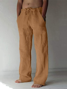 Hombre Pantalones de lino Pantalones Pantalones de verano Pantalones de playa Correa Cintura elástica Pierna recta Plano Comodidad Transpirable Longitud total Casual Diario Festivos Vacaciones Moda