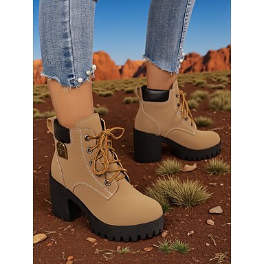 Botines con plataforma y cordones de piel sintética beige para mujer: zapatos de fiesta con tacón de aguja alto para la vida nocturna y club.